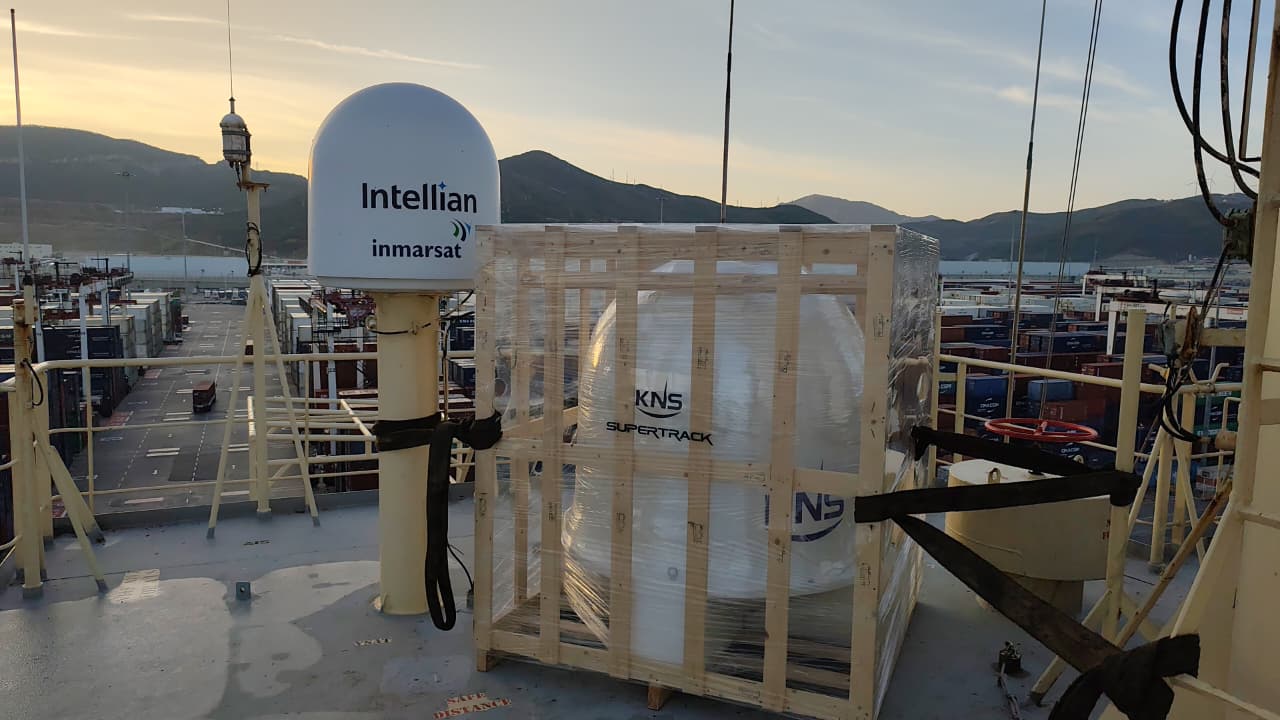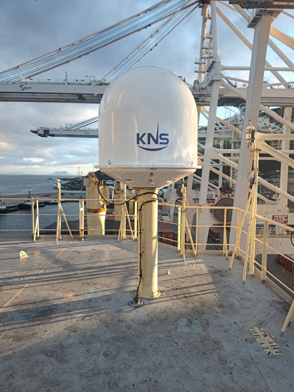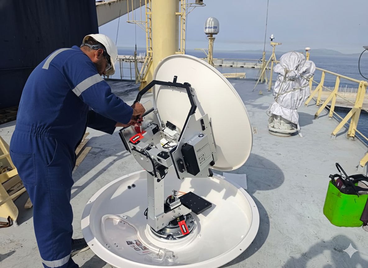 The service included installation and commissioning of a KNS Z10 MK4 antenna, configuration of shipboard email services via SMC4, validation of Wi-Fi performance, and preparation for VoIP integration.
